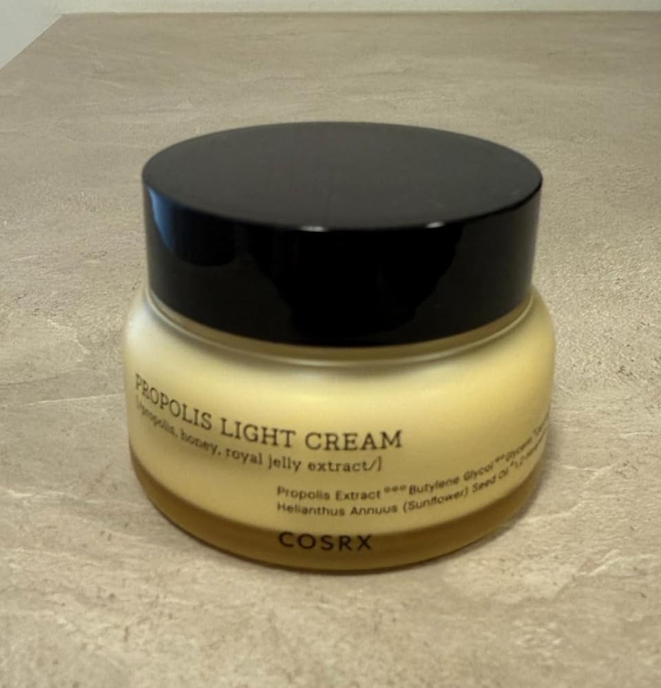 COSRX Propolis Light Cream is a lightweight yet deeply nourishing face cream formulated with 65.69% Pro-Barrier Complex, a powerful blend of Black Bee Propolis, Manuka Honey, Royal Jelly, and Beeswax. Its fresh, gel-like texture absorbs quickly without greasiness, delivering intensive moisture and a radiant, honey-like glow.